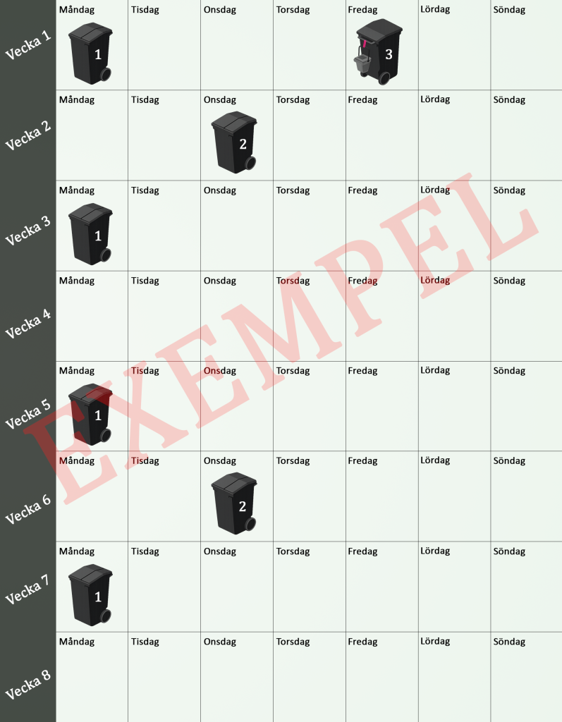 Kärl 1 – Mat- och restavfall – varannan vecka.