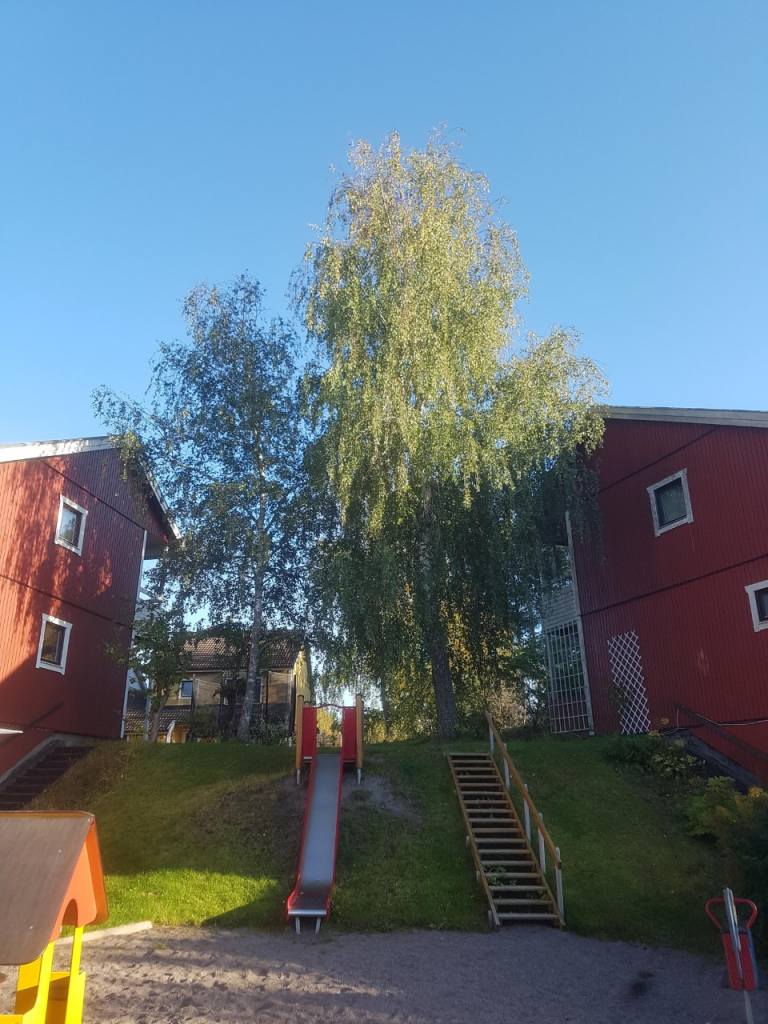 Vi kommer också att prova med att inte klippa slänten vid lekplats 17 och omvandla den till ängsmark, eftersom det området är svårt att klippa. Det tar några år att skapa en äng på riktigt så vi börja med att lägga lite ängsfrö och låta bli att klippa med gräsklippare.