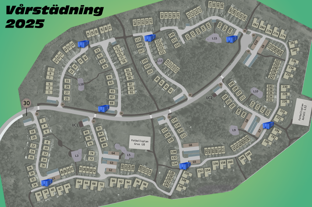 Men innan dess kommer grovsopning av grus ske. Detta kommer påbörjas nästa vecka (v15) så vi önskar att alla boende kan hjälpa till att sopa ut grus från kanter, gupp och grönytor ut på vägarna i början på veckan.